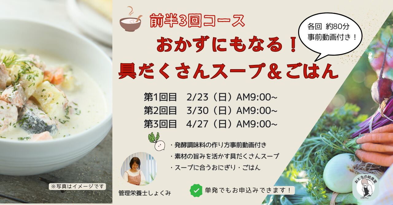 ☆『おかずにもなる具だくさんスープ&ごはん』前半3回